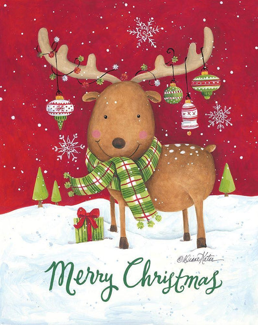 Merry Christmas Reindeer White Modern Wood Framed Art Print with Double Matting by Kater, Diane