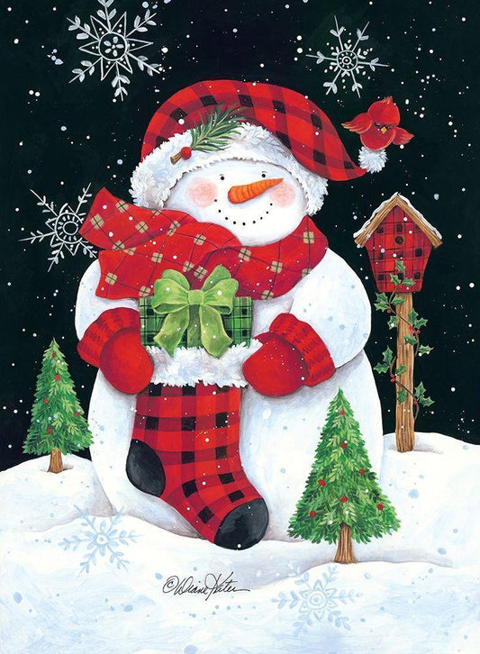 Plaid Snowman White Modern Wood Framed Art Print with Double Matting by Kater, Diane