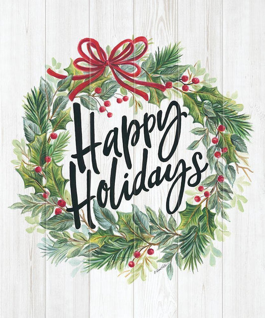Happy Holidays Wreath White Modern Wood Framed Art Print with Double Matting by Kater, Diane