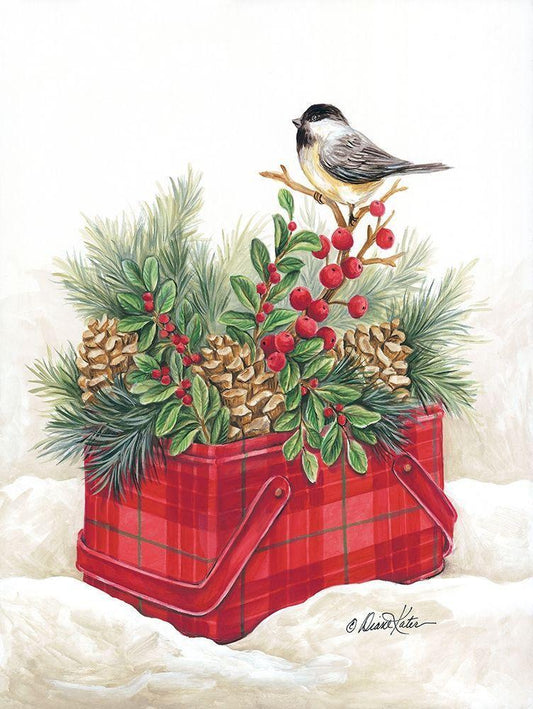 Christmas Lodge Watering Can White Modern Wood Framed Art Print with Double Matting by Kater, Diane