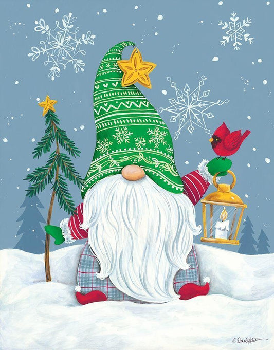 Snowy Gnome with Lantern White Modern Wood Framed Art Print with Double Matting by Kater, Diane