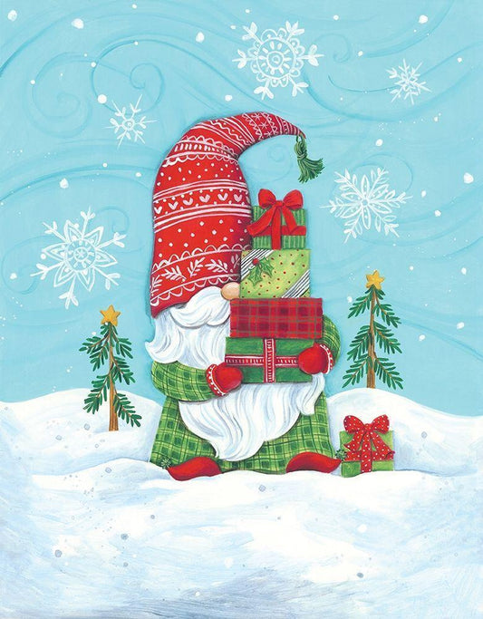 Snowy Gnome with Present White Modern Wood Framed Art Print with Double Matting by Kater, Diane