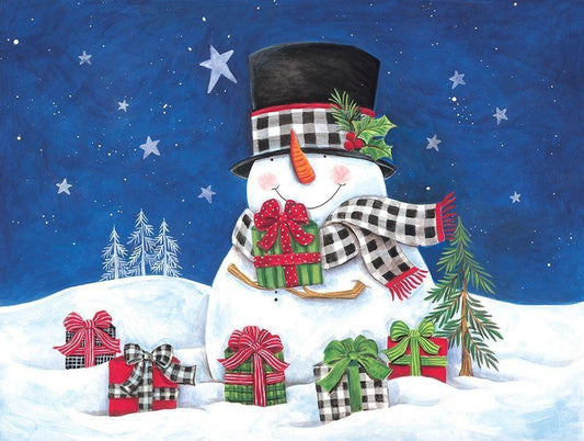 Gifting Snowman I White Modern Wood Framed Art Print with Double Matting by Kater, Diane