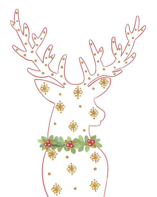 Deck the Halls Reindeer White Modern Wood Framed Art Print with Double Matting by LaPoint, Annie