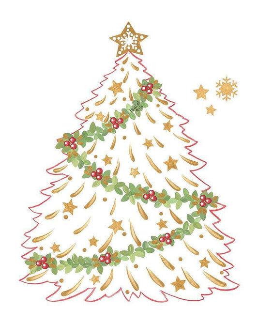 Deck the Halls Christmas Tree White Modern Wood Framed Art Print with Double Matting by LaPoint, Annie