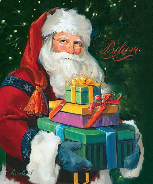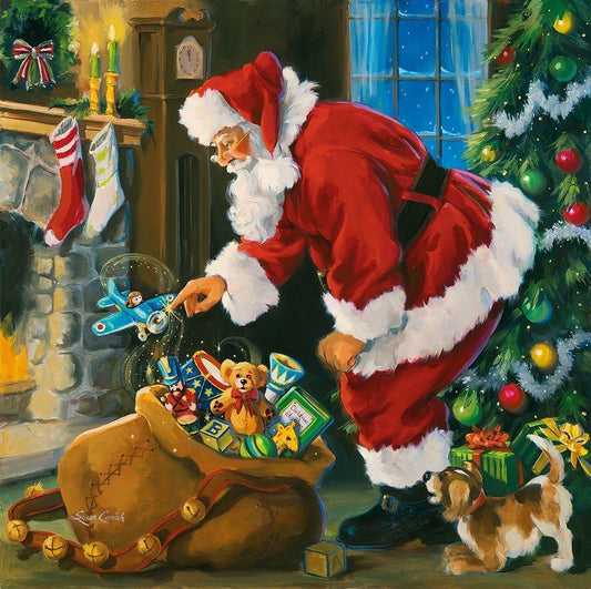 Santas Magic Touch White Modern Wood Framed Art Print with Double Matting by Comish, Susan