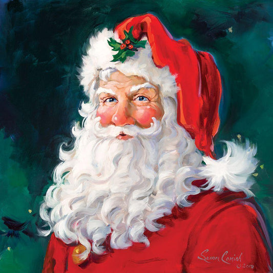 Santa Portrait White Modern Wood Framed Art Print with Double Matting by Comish, Susan