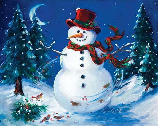 Snowman and Friends White Modern Wood Framed Art Print with Double Matting by Comish, Susan