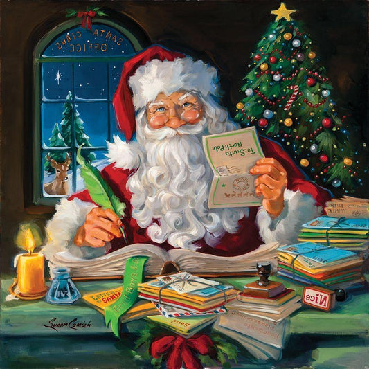 Santas Office White Modern Wood Framed Art Print with Double Matting by Comish, Susan