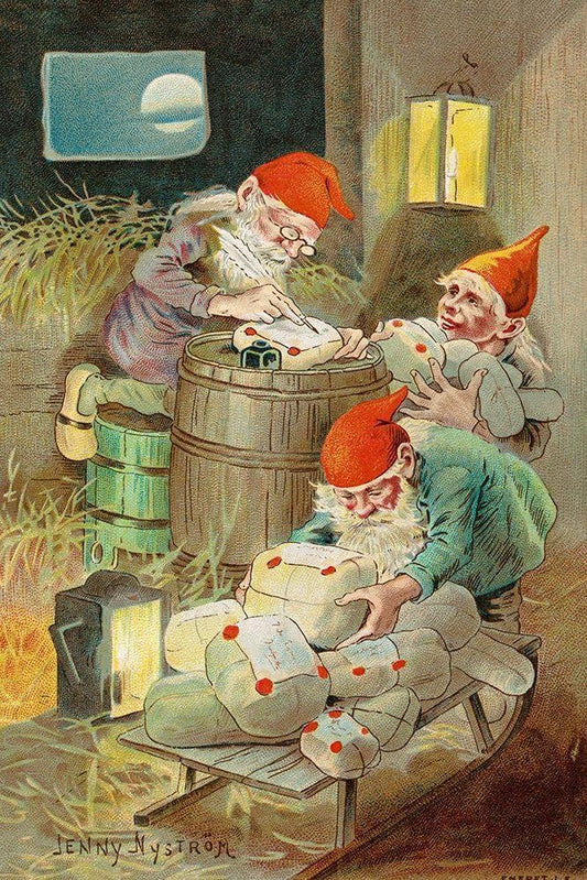 Santa elves sweeping snow White Modern Wood Framed Art Print with Double Matting by Wallach, Miriam and Ira D