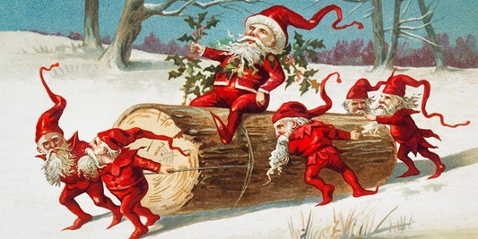 Santa elves sliding on a log White Modern Wood Framed Art Print with Double Matting by Wallach, Miriam and Ira D