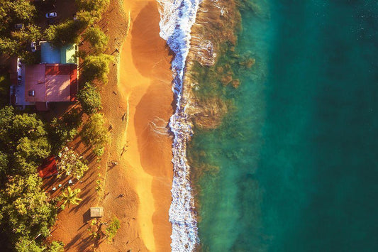 Guadeloupe - Plage De La Perle Aerial White Modern Wood Framed Art Print with Double Matting by Claude Castor, Jean