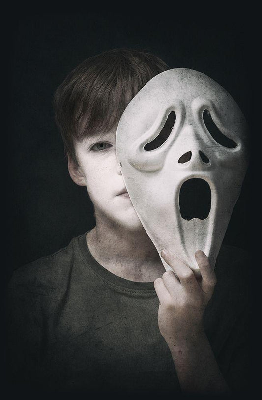 Behind The Mask White Modern Wood Framed Art Print with Double Matting by Gibney, Paul