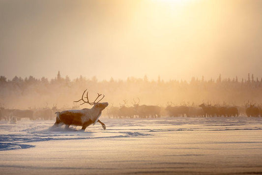 Reindeers White Modern Wood Framed Art Print with Double Matting by Minar, Patrik