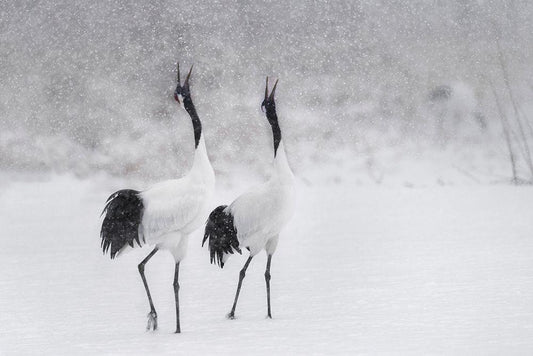 Japanes Cranes White Modern Wood Framed Art Print with Double Matting by Marchegiani, Roberto