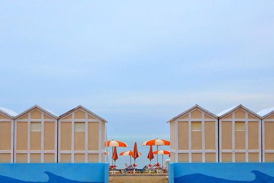 Ombrelloni White Modern Wood Framed Art Print with Double Matting by Della Latta, Massimo