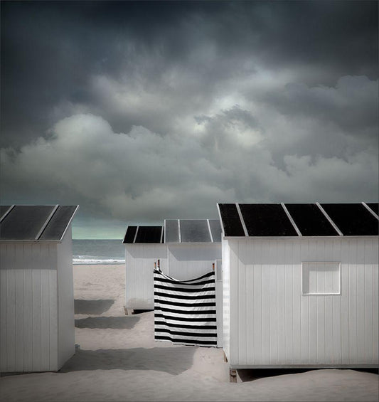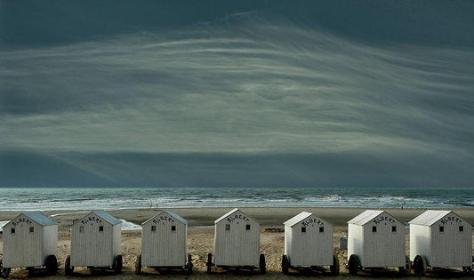 Beach Huts On The Pier White Modern Wood Framed Art Print with Double Matting by Wride, Linda