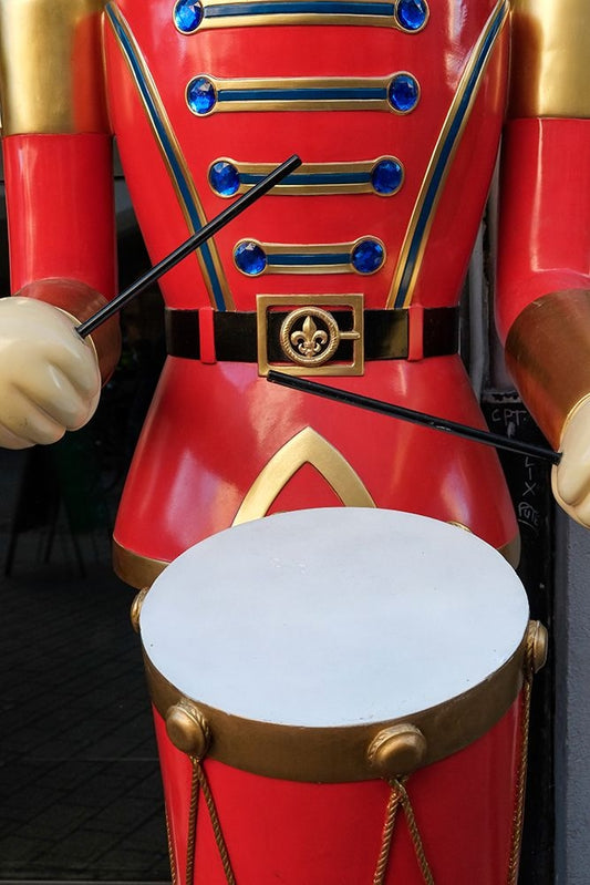 Strasbourg-France Large soldier playing a drum as part of festive holiday decor at Christmas White Modern Wood Framed Art Print with Double Matting by McRoberts, Julien