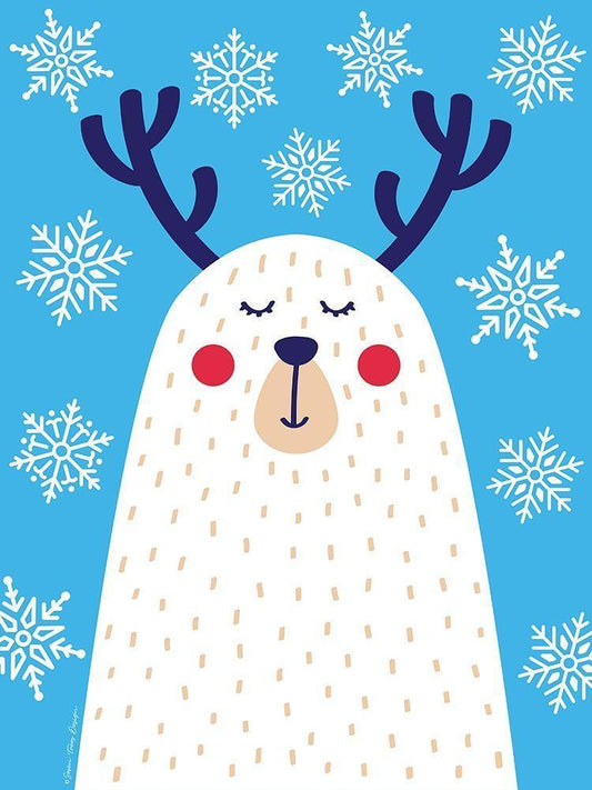 Snowflake Reindeer White Modern Wood Framed Art Print with Double Matting by Seven Trees Design