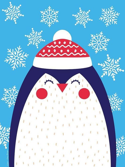 Snowflake Penguin White Modern Wood Framed Art Print with Double Matting by Seven Trees Design