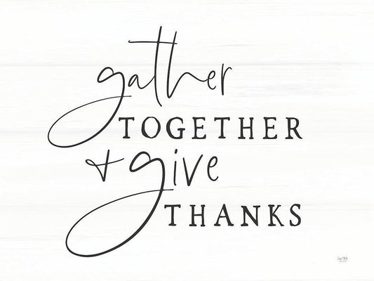 Gather Together And Give Thanks White Modern Wood Framed Art Print with Double Matting by Lux + Me Designs