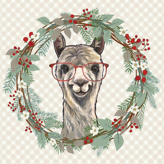 Christmas Llama Wreath White Modern Wood Framed Art Print with Double Matting by Keller, Lee