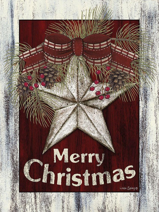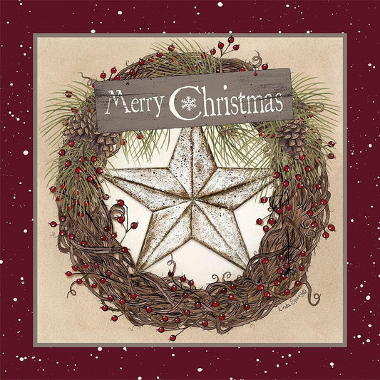 Christmas Barn Star Wreath White Modern Wood Framed Art Print with Double Matting by Spivey, Linda