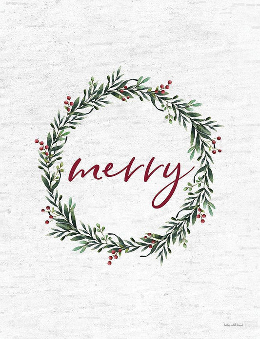 Merry Wreath White Modern Wood Framed Art Print with Double Matting by Lettered and Lined