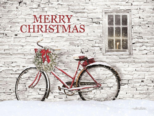 Merry Christmas Bicycle White Modern Wood Framed Art Print with Double Matting by Deiter, Lori