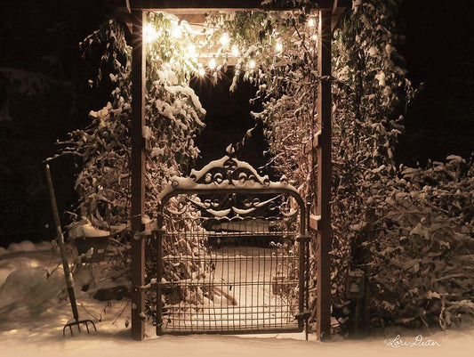 Snowy Garden Gate White Modern Wood Framed Art Print with Double Matting by Deiter, Lori
