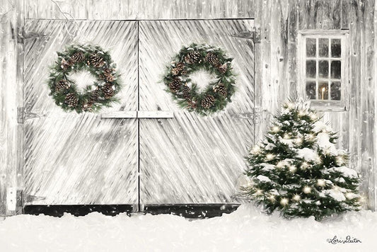 Christmas Barn Doors White Modern Wood Framed Art Print with Double Matting by Deiter, Lori