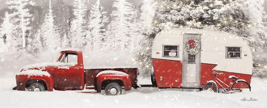 Christmas Camper with Bike White Modern Wood Framed Art Print with Double Matting by Deiter, Lori