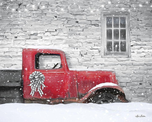 Christmas Truck with Plaid Bow White Modern Wood Framed Art Print with Double Matting by Deiter, Lori