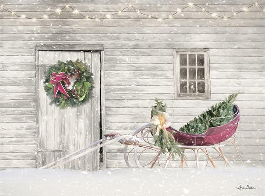 Christmas Barn with Sleigh White Modern Wood Framed Art Print with Double Matting by Deiter, Lori