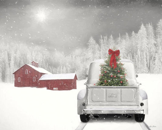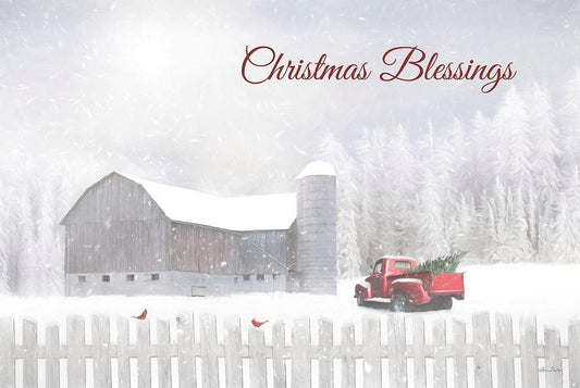 Christmas Blessings with Truck White Modern Wood Framed Art Print with Double Matting by Deiter, Lori