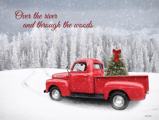 Christmas Truck on Wood White Modern Wood Framed Art Print with Double Matting by Deiter, Lori