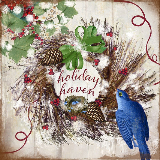 Bluebird Christmas II White Modern Wood Framed Art Print with Double Matting by Sasha