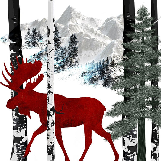 Winter Moose White Modern Wood Framed Art Print with Double Matting by LightBoxJournal