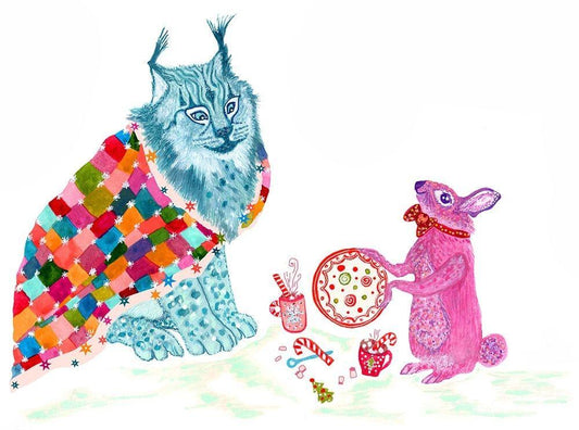 Mistelpaws And Snowpea White Modern Wood Framed Art Print with Double Matting by Kwerki Studios