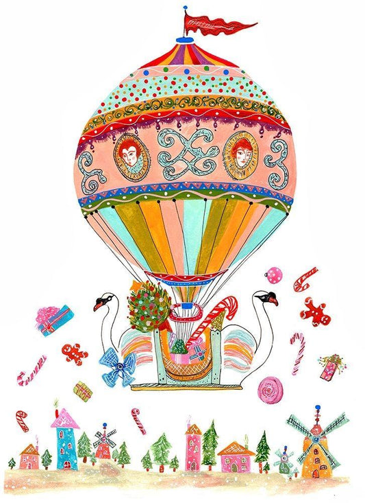 Ornament Hot Air Balloon White Modern Wood Framed Art Print with Double Matting by Kwerki Studios