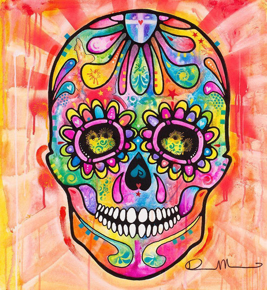 Sugar Skull - Day of the Dead White Modern Wood Framed Art Print with Double Matting by Dean Russo Collection