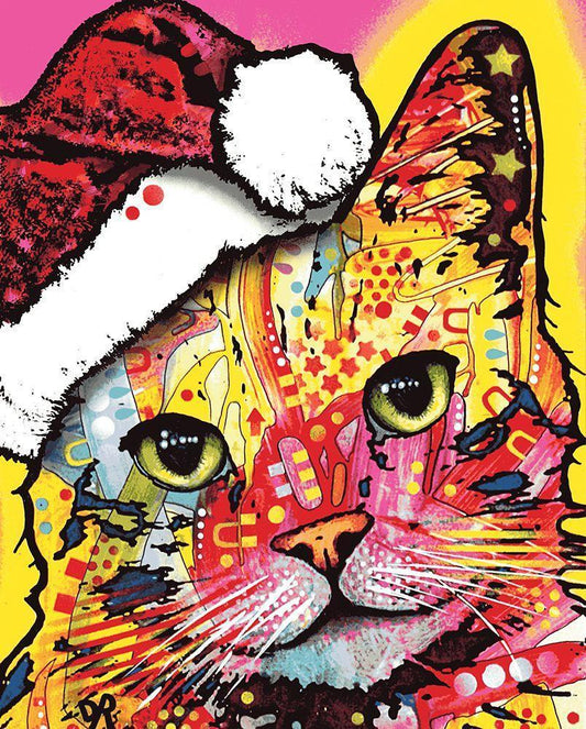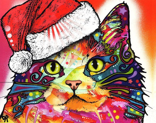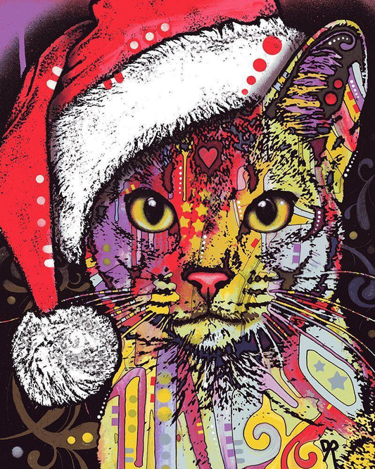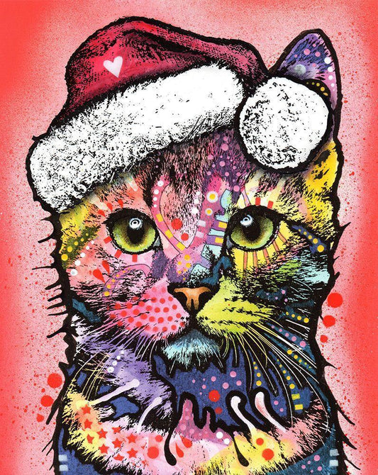 Christmas Cat White Modern Wood Framed Art Print with Double Matting by Dean Russo Collection