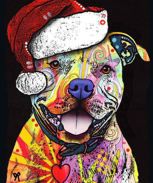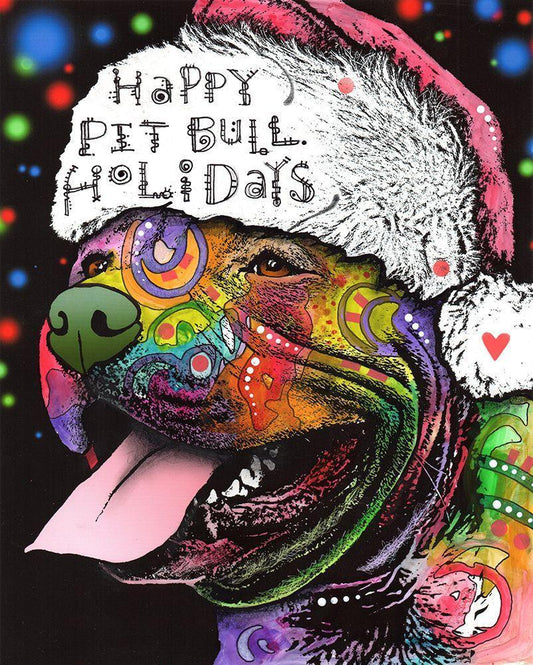 Christmas Pitbull White Modern Wood Framed Art Print with Double Matting by Dean Russo Collection