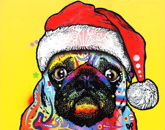 Pug Christmas Edition White Modern Wood Framed Art Print with Double Matting by Dean Russo Collection