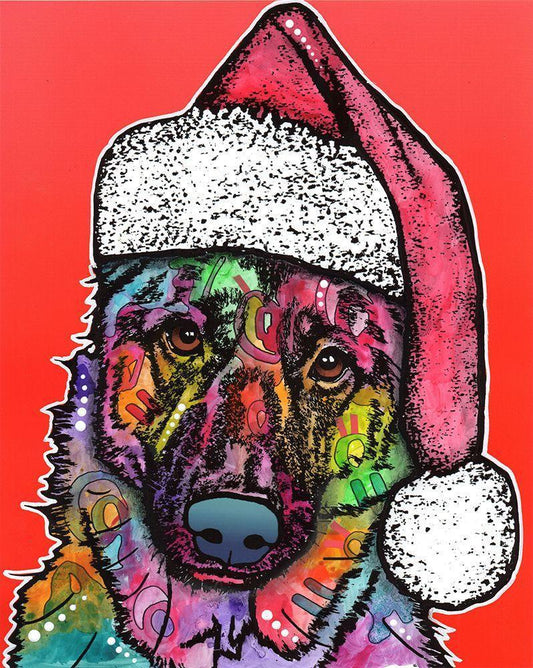 German Shepherd Christmas White Modern Wood Framed Art Print with Double Matting by Dean Russo Collection