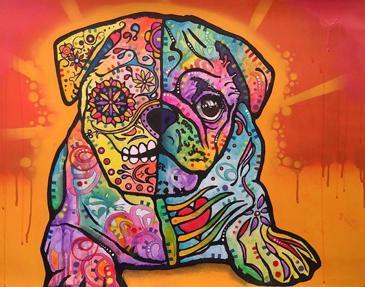 Sugar Pug White Modern Wood Framed Art Print with Double Matting by Dean Russo Collection