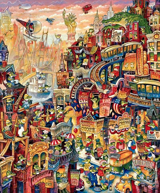 Croc City White Modern Wood Framed Art Print with Double Matting by Bell, Bill