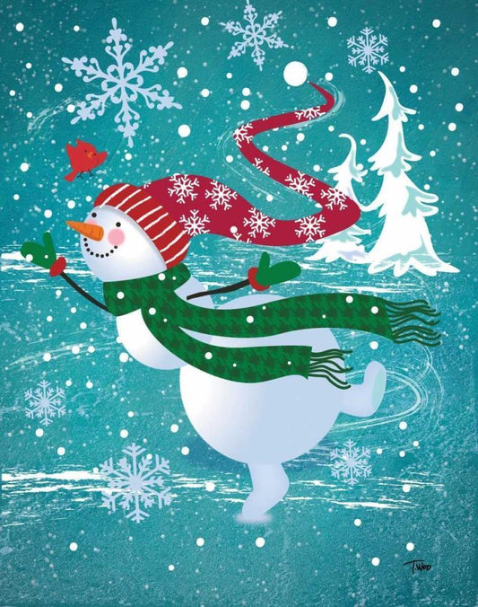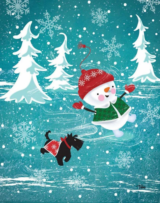 Penguins and Snowman White Modern Wood Framed Art Print with Double Matting by Woo, Teresa