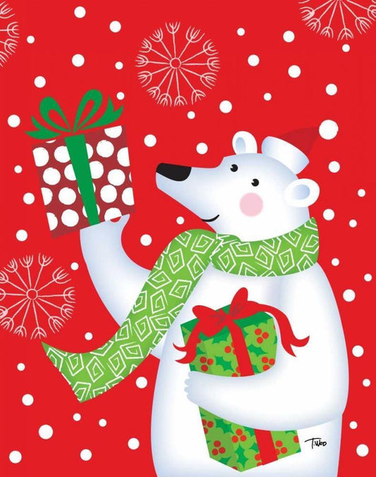 Polar Bear and Presents White Modern Wood Framed Art Print with Double Matting by Woo, Teresa