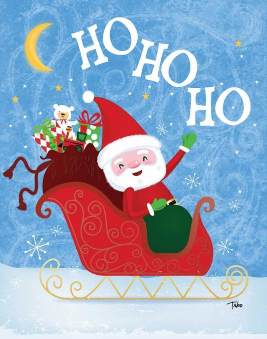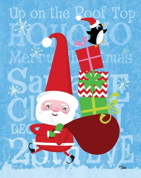 Santa Sledding White Modern Wood Framed Art Print with Double Matting by Woo, Teresa